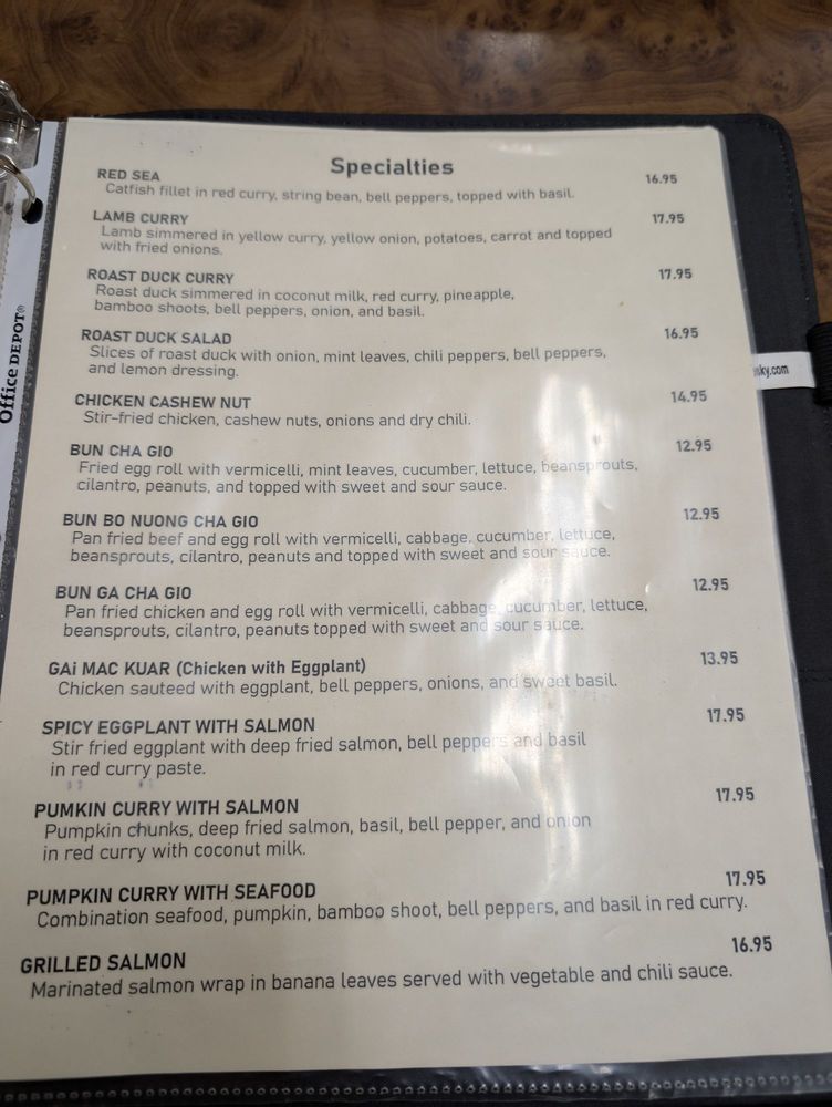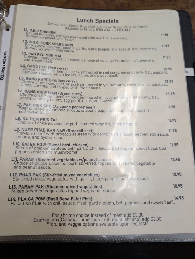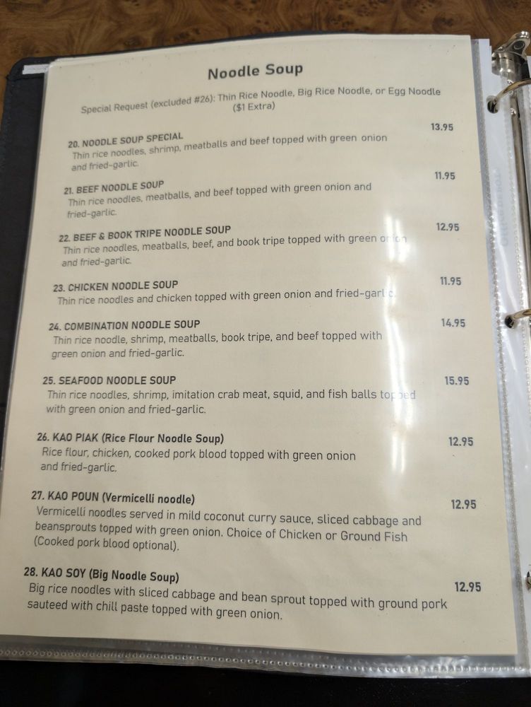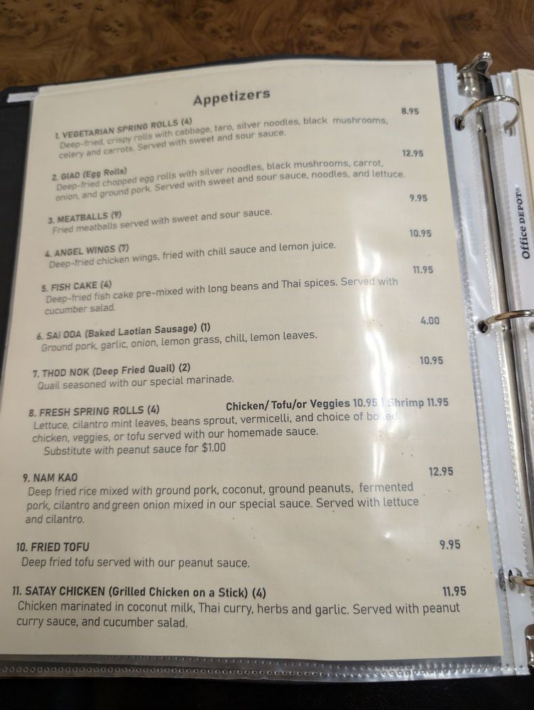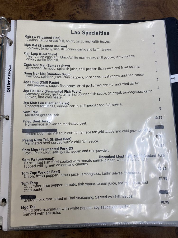 Introducing the menu at Vientian Cafe, a Thai-Vietnamese restaurant in Oakland, CA, offering a variety of delicious options for every palate. From appetizers like Angel Wings and Baked Laotian Sausage to refreshing salads like Grilled Beef Salad and Papaya Salad, the menu is filled with flavorful dishes. Dive into satisfying soups like KaoLao and Seafood Combination Soup for a comforting meal. With options for vegans and vegetarians, as well as amenities like outdoor seating, Wi-Fi, and waiter service, Vientian Cafe provides a welcoming dining experience for all. Whether you're looking for a quick lunch or a relaxed dinner with friends, this restaurant offers a diverse menu in a casual setting. Don't miss out on trying their specialties like the Deep Fried Quail and Meat Salad for a true taste of Southeast Asian cuisine.